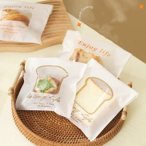 Monouso autoadesivo Toast sacchetti di imballaggio fetta di pane sacchetti a prova di olio di carta di cotone biscotto borsa da forno con finestra